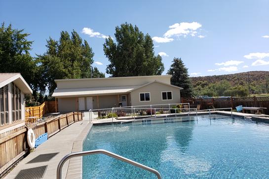 Geothermal water is piped directly from the spring to the pool and spa. The continual flow through design keeps the water fresh and sparkling. The pool is drained, pressure washed and refilled every week. The naturally occurring minerals leave you refreshed and relaxed. Our newly improved temperature control system allows us to keep soakers happy winter or summer!